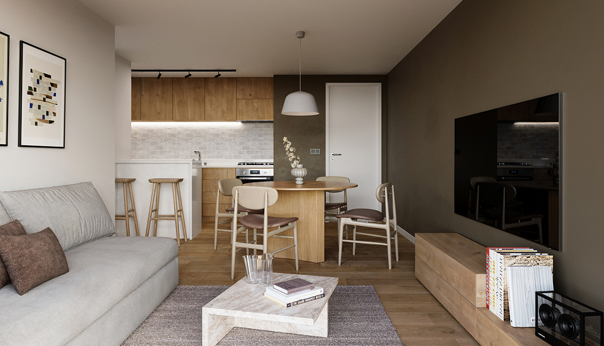 Los departamentos se distinguen por sus terminaciones de primer nivel y una tecnología pensada para ofrecer confort en la vida cotidiana. Cuentan con balcón propio, ambientes luminosos y pisos simil madera que aportan calidez y estilo.