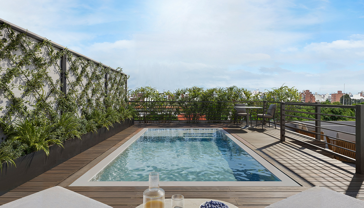 En el Rooftop de Nuovo LAS ROSAS, la comodidad y el disfrute se combinan. Relajate en la pileta con solárium o compartí momentos especiales en el lounge completamente equipado, ideal para reuniones y encuentros.